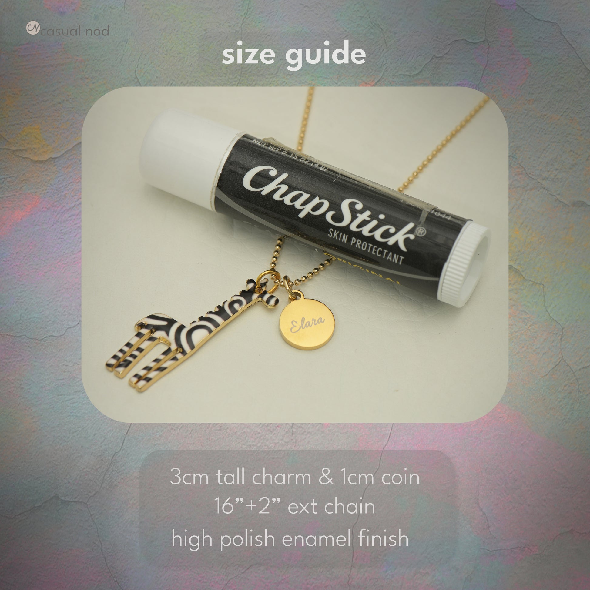 Design: colorful giraffe necklace with funny face whimsical and fun Quality: gold plated finish with color enamel; crafted in Korea Size: 3 cm charm 1cm diameter coin with 16"" ball chain with 2"" extension Use: Gift Idea: thoughtful pick for giraffe animal lovers, birthdays, or a small pick-me-up Gift: Ready to Gift: boxed for easy giving; optional engraving on add-on coin"