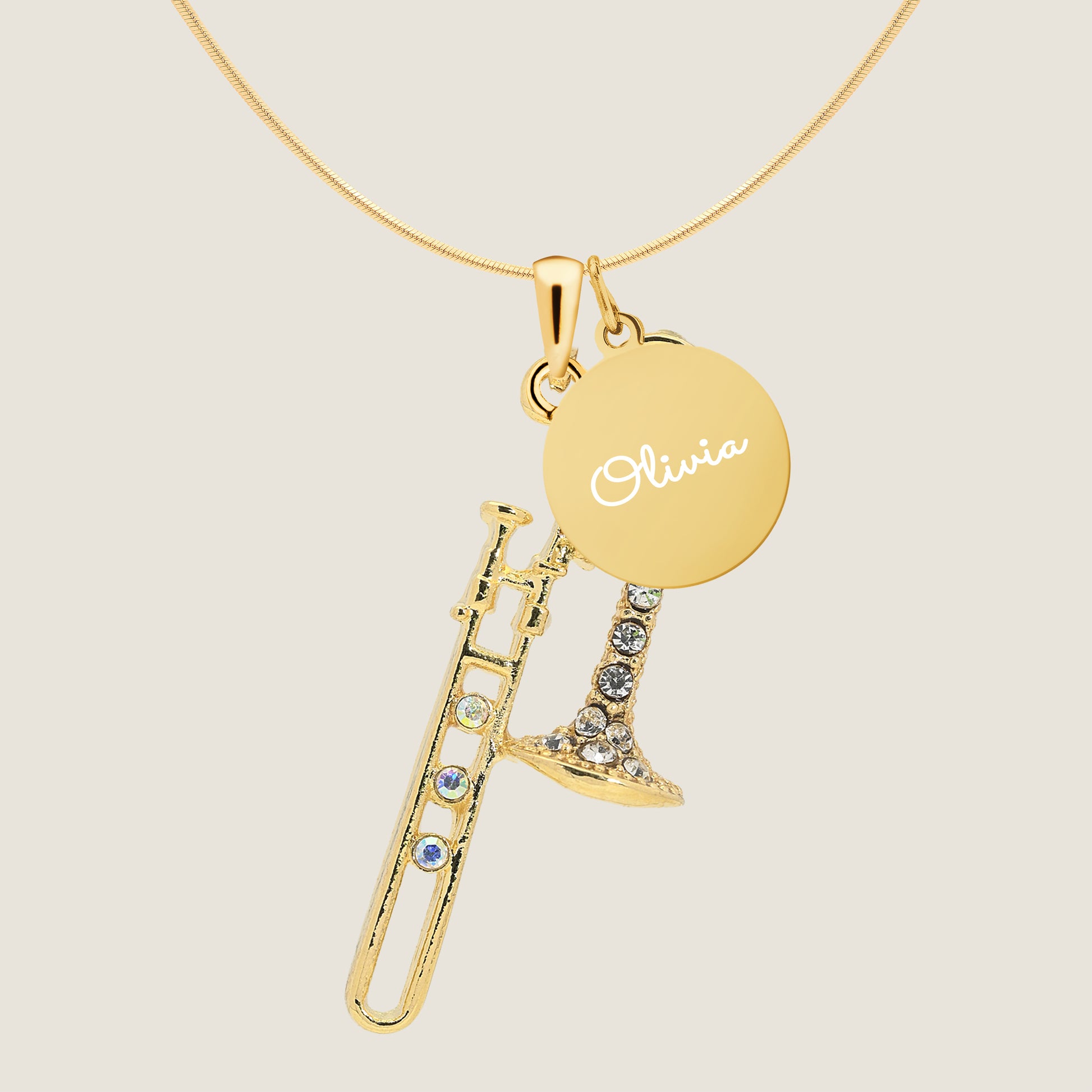 Personalized Trombone Pendant & Engraved Charm Necklace