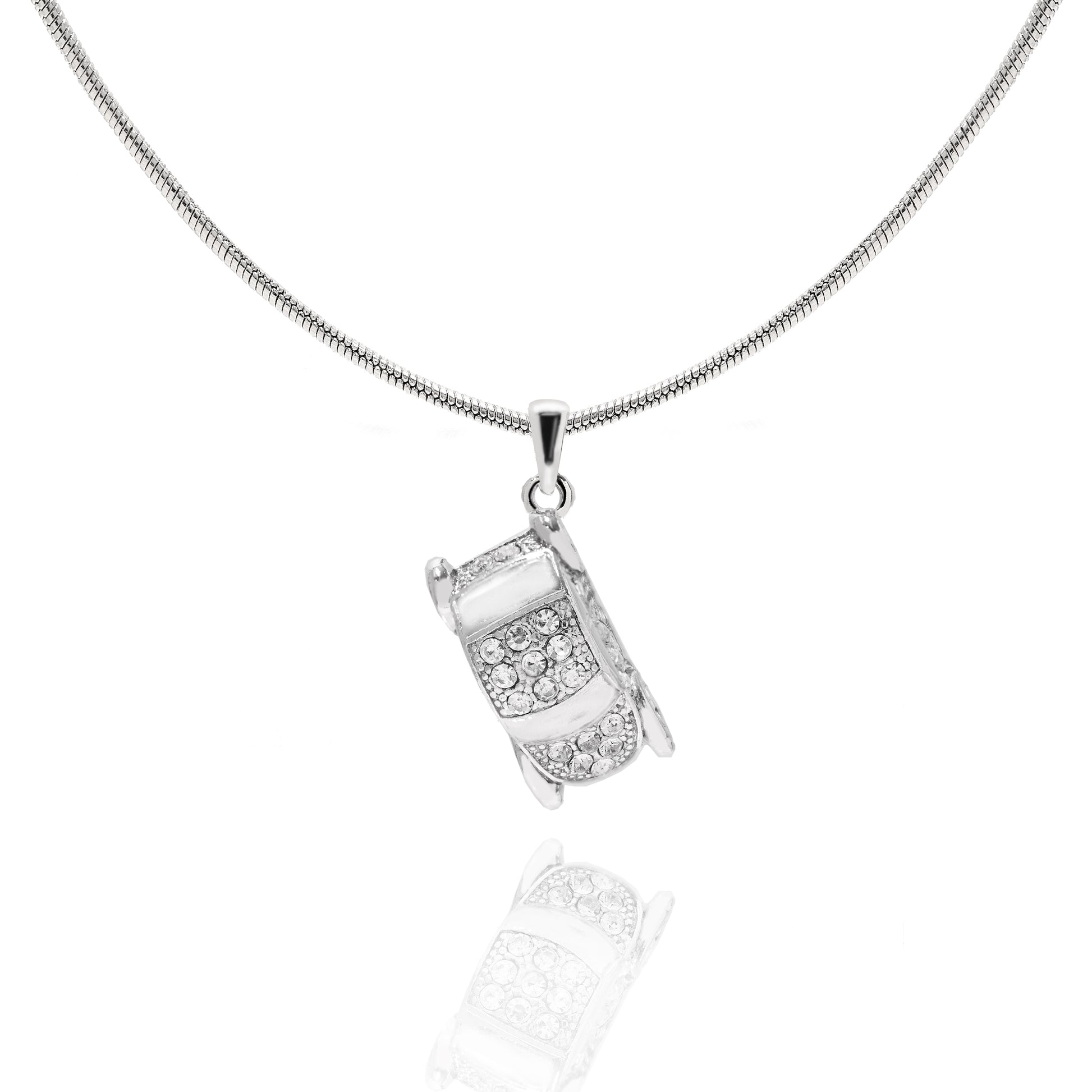 Bring a little grin to your jewelry collection with this playful Silver Plated Beetle Bug Car Necklace. Crafted in South Korea, this whimsical charm (1" tall x 0.5" wide) features a glossy silver-plated finish with rhinestone detail, hanging from a 16" snake chain plus 2" extender. A 12mm stainless steel coin can be personalized with custom engraving, making it a one-of-a-kind keepsake.